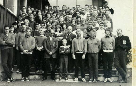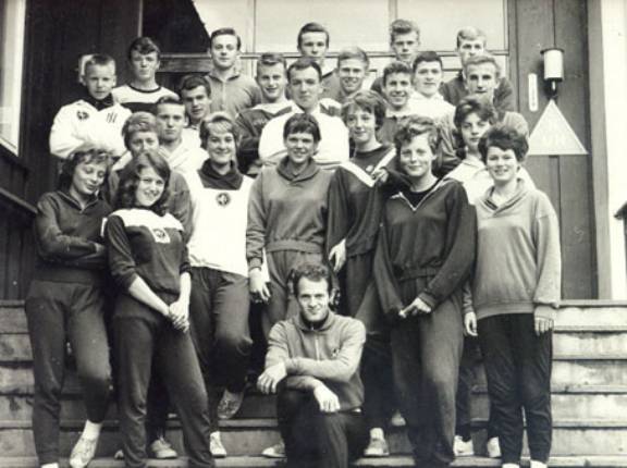 (Studentmestrene i fotball 1962. Gymskolens lag har samme keeper som Norges landslag. "Kasper" deltok også på fotballtrenerkurset ledet av vår egen fotballlærer Lorang Ridder Nilsen og med bl.a "King Kong" Johannesen og Knut Osnes som instruktører og selveste "Nikken" som "overkikkador". Elevene hadde tverridrettslig bakgrunn på høyt nivå.)