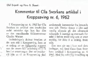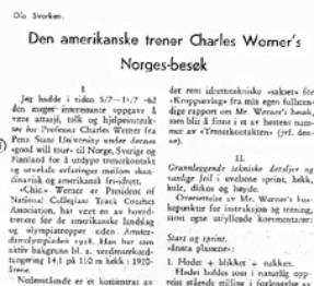 Sommeren 1962 er jeg også tolk og hjelpeinstruktør for den amerikanske olympiatrener Charles Werner i Oslo og på Lillehammer og på Hamar. Min rapport om dette i Gymnastikkskolens fagtidsskrift "Kroppsøving" kom til å utløse en lengre debatt mellom flere fagpersoner, i første rekke Hans B. Skaset og Olaf Evjenth.