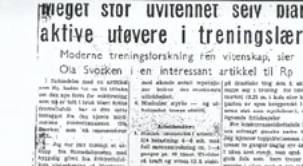 Det bygger nok på daværende moderne treningsprinsipper, og trolig ville man komme i form idag også ved å følge opp et slikt program! Noe bemerkelsesverdig på den tid var at treningsstoff var avisstoff, og jeg bidrar til denne praksis med helsider i Kristiansundsavisen Romsdalsposten .