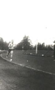 Han får øye på meg og roper: "Hei Svorken, kom med en gang! Bli med opp på Frogner og dra meg på lagseriestevne der! Martin (Skotvoll) har sagt at jeg må få notert et resultat på 200-meter for serien før jeg drar tilbake til Gøteborg (Tekniske høyskole).
