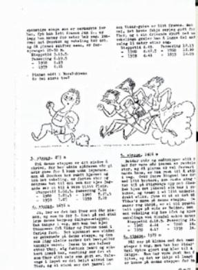 M.h.t. idretten er det pussige at han nå i de senere år er blitt ivrig etter å se både friidrett, fotball og damehåndball på TV. Ja, han synes nesten å ha fått greie på ting også. Han sier f.eks. slike ting som at dette blir for hard åpning for Rodahl, at Cecilie Leganger står for langt ute i målgården ved straffekast og at denne puslete Mini´n dribler seg bort istedenfor å sentre til Skammelsrud med engang! Men han synes det er for galt at disse guttungene skal tjene så grovt mye mer enn skikkelige arbeidsfolk! Da minner jeg ham på hva han sa til meg for 40 år siden, at idretten ikke var noe å leve av! "Ja, det er blitt en merkelig tid", sier han