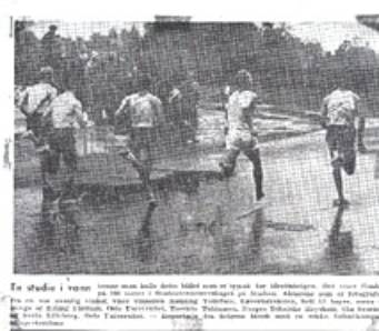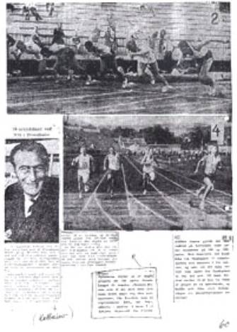 (Lerkendal stadion 1964 - 100 m forsøksheat - "Bassen" innerst ved gjerdet, Svorken midt i feltet.).
