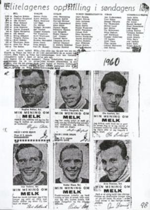 Melkereklamen for Landbruksdepartementet i 3 av landets største aviser mandagen etter Holmenkollstafetten i 1960 sponset og muliggjorde charterflytur til Svenska Dagbladstafetten. Risikabelt fra departementets side. Det ville vel vært flaut og bortkastet hvis vi ikke hadde vunnet det året? Samtlige løpere på vårt elitelag sier noen "bevingede ord" om melkens betydning for idrettsprestasjoner.